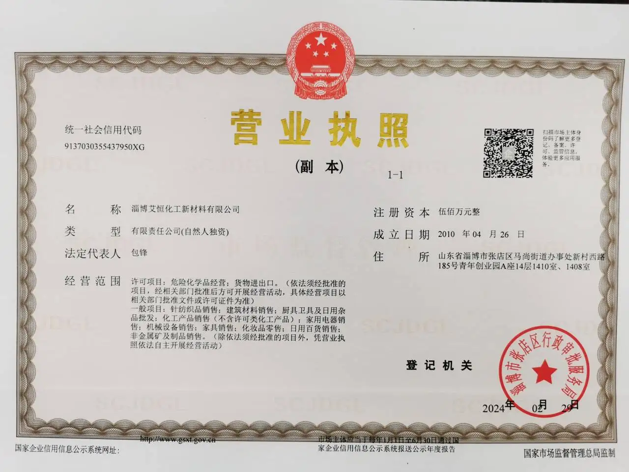 Registered address : Room 1410, 1408, 14 / F, Building A, Youth Pioneer Park, 185 Xincun West Road, Masang Street Office Zibo Shandong China